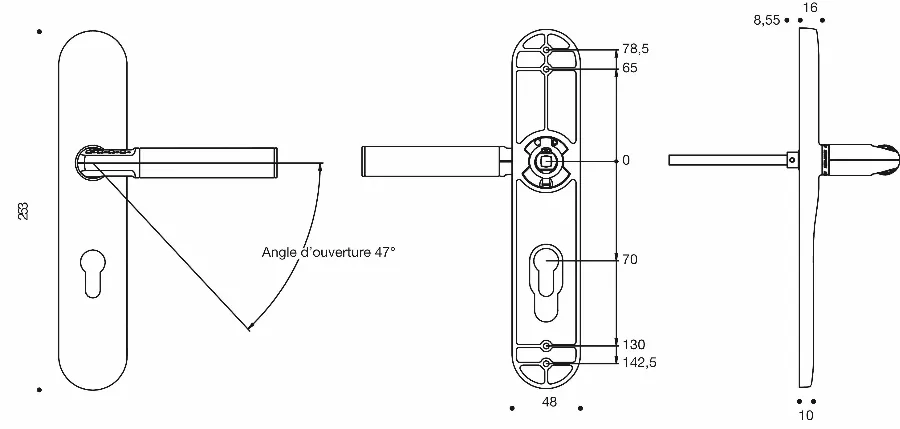 - Pour portes intérieures, épaisseur de 35 à 80 mm