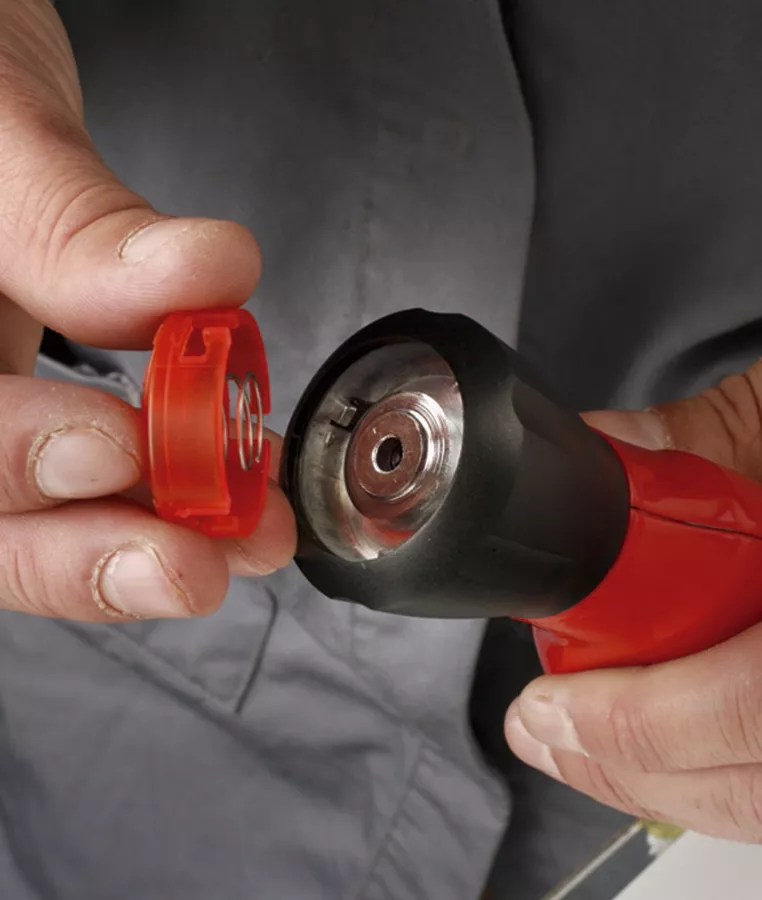 - Ebavureur rotatif rétractable à lame interchangeable.