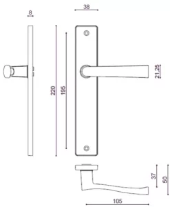 Ensemble De Porte Plaque Large New York Clé I Aspect Inox F9 HOPPE – 1810/300M – 195mm – Entr.7/70 C.7mm – 58/67 – 3281160