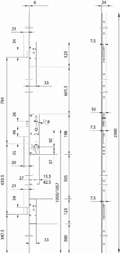 Serrure Horizontale NORMBAU – Tirage – Cylindre Ø45 – Axe 70mm – Droite – 1.50121.73.1 – 3005003000
