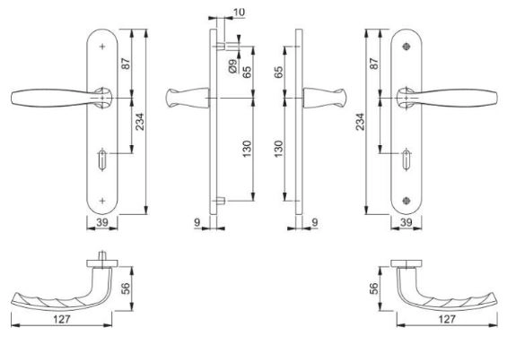 - Garniture HOPPE en aluminium sur plaques longues, pour porte intérieure :