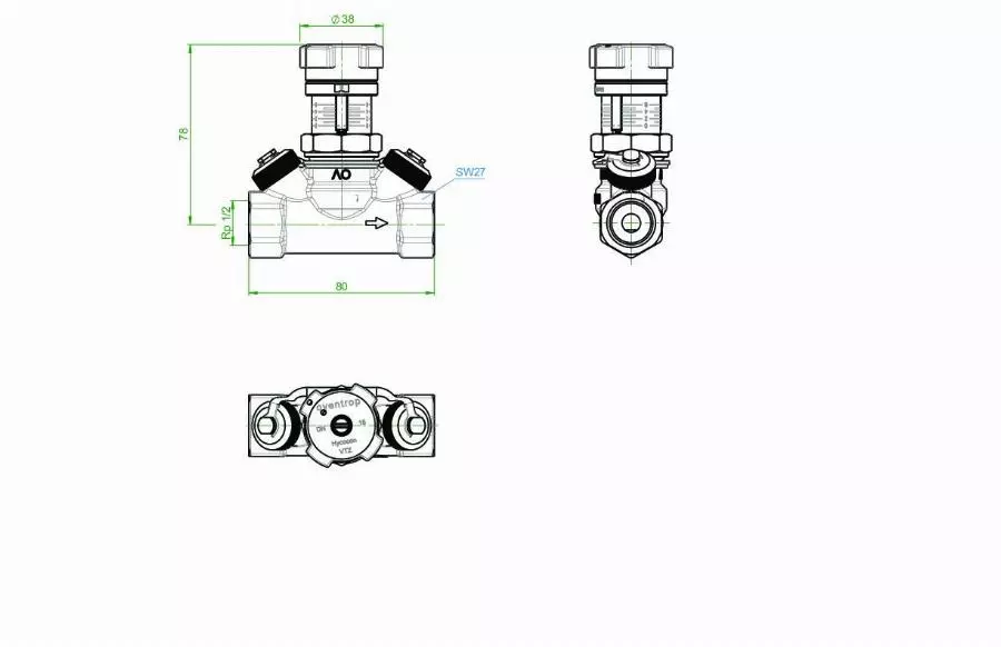 - Raccordement fileté M 30 x 1,5, convient pour le montage de thermostats (par ex. « Uni XH ») ou de moteurs (par ex. servo-moteur « Uni EIB ») et d’une tête régulatrice de pression différentielle.