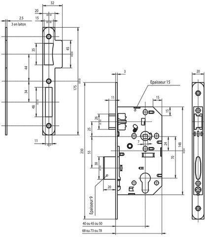 Serrure à pêne dormant et 1/2 tour pour cylindre profilé