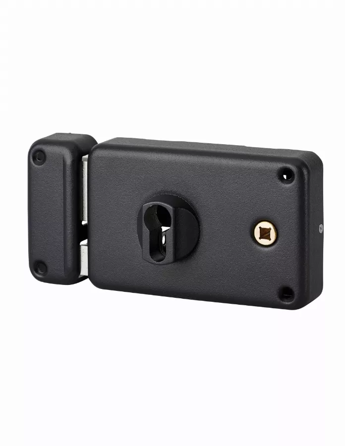 - • Pêne et demi-tour acier en saillie de 5 mm.
