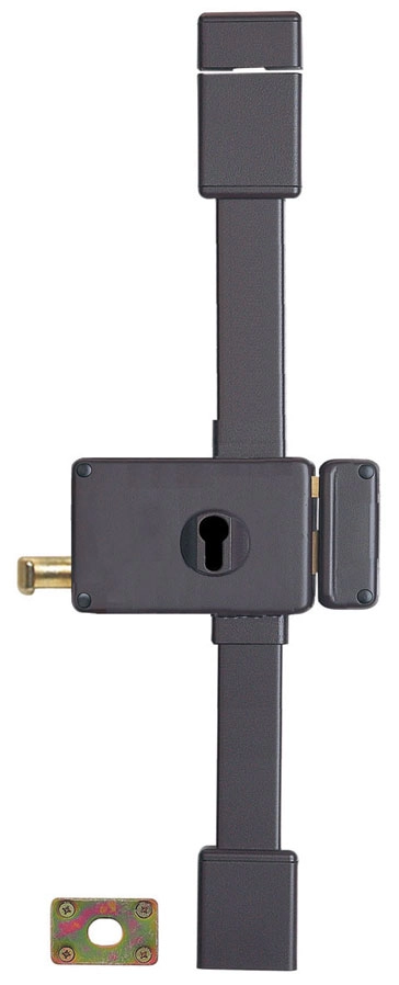 - Mécanisme intérieur type équerre permettant la manoeuvre du 1/2 tour avec la clé, de l’intérieur comme de l’extérieur