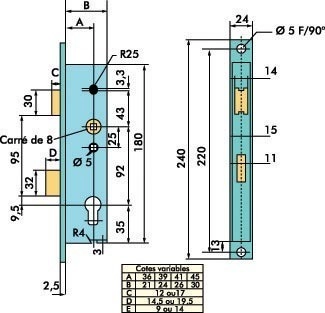 Serrure Pêne Dormant 1/2 Tour 780/ 36 Mm Coffre 92MTX 1 Point METALUX – Sans Gâche – F178360200