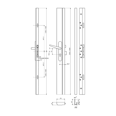 Livrée sans cylindre : pour une porte de 45mm prévoir un cylindre 30×65