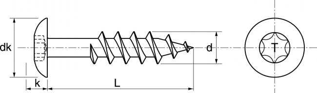 - Vis pour bois tendre tête cylindrique six lobes inox A2